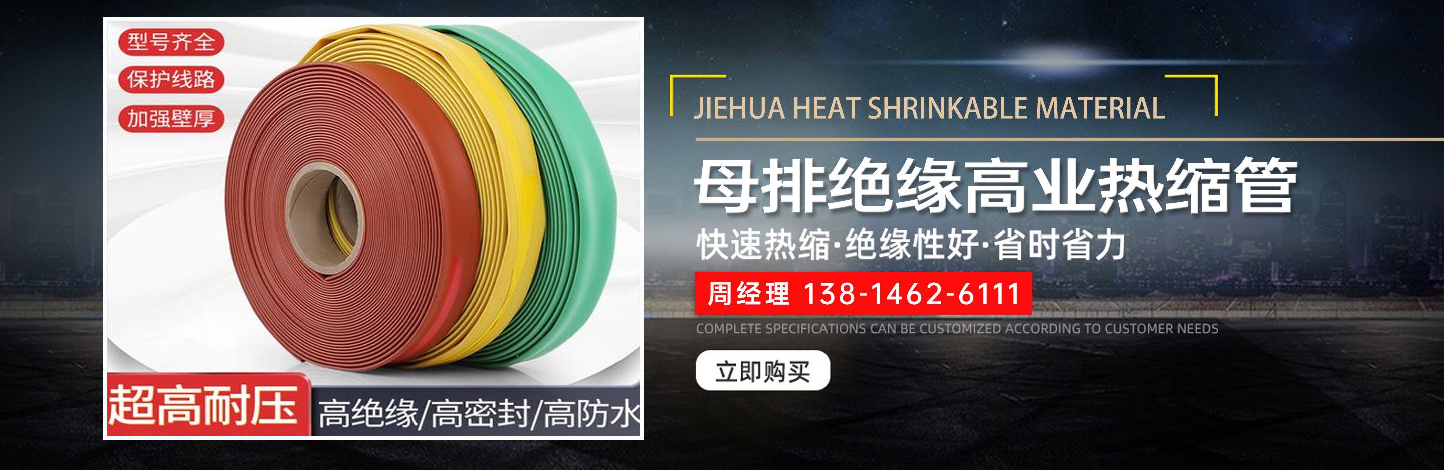 南通市捷華熱收縮材料有限公司是一家專業的熱縮材料生產廠家和銷售商。公司的管理層包括總經理、研究開發部總工程師及大部分的中層管理干部都有超過20多年從事熱縮材料的開發,提升生產及服務的工作經驗。所以我們有足夠的信心提供給我們的客戶高品質的產品及最具競爭力的價格?! ∥覀児局饕a品有PE無鹵環保熱縮管,母排絕緣高業熱縮管,防水帶膠雙壁熱縮管,PVC熱縮套管,PET熱縮套管,熱縮管,熱縮套管,熱收縮管,熱縮管廠家等。產品符合CE及RoHs標準,廣泛應用于電子產品,電力行業,通信行業,汽車行業,造船行業,工業設備行業,家  電行業,軍工行業等產品上的絕緣,密封,連接,保護。豐富的產品線可以滿足不同行業的產品不同應用與需求?! 」窘⒘霜毩⒌难芯颗c開發實驗中心,每年持續不斷投入大量資金開發新產品及提升產品性能。強大的研發中心確保我司熱縮材料產品在行業中處于領先地位,并且可以針對客戶的個性化需求進行針對性的研發與生產?! 〗萑A熱收縮材料堅持以“誠信務實、勇于負責、持續成長”的核心價值觀,以“為全球客戶提供一流熱縮材料解決方案”為使命,用誠信經營打造企業品牌,以優質的產品、誠摯的服務來回報客戶;公司致力于通過有效的管理、卓越的設計和良好的服務來實現使命;公司推行“綠色制造”理念,堅持可持續...